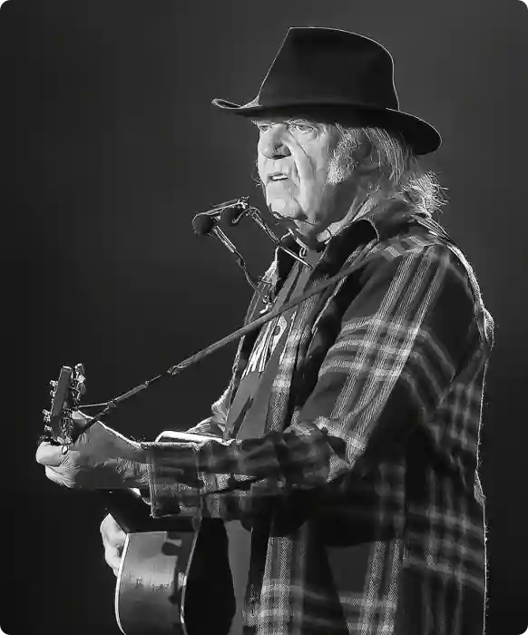 Youngs Karriere begann 1966 mit der Band Buffalo Springfield. Er tritt mit der Band Crazy Horse, aber auch solo und mit anderen Künstlern auf, insbesondere mit Crosby, Stills, Nash (& Young). Seine kommerziell erfolgreichsten Titel sind Heart of Gold und Rockin’ in the Free World. Er hat 45 Studioalben, 27 Livealben sowie diverse Kollaborationsalben, Soundtracks und EPs veröffentlicht.